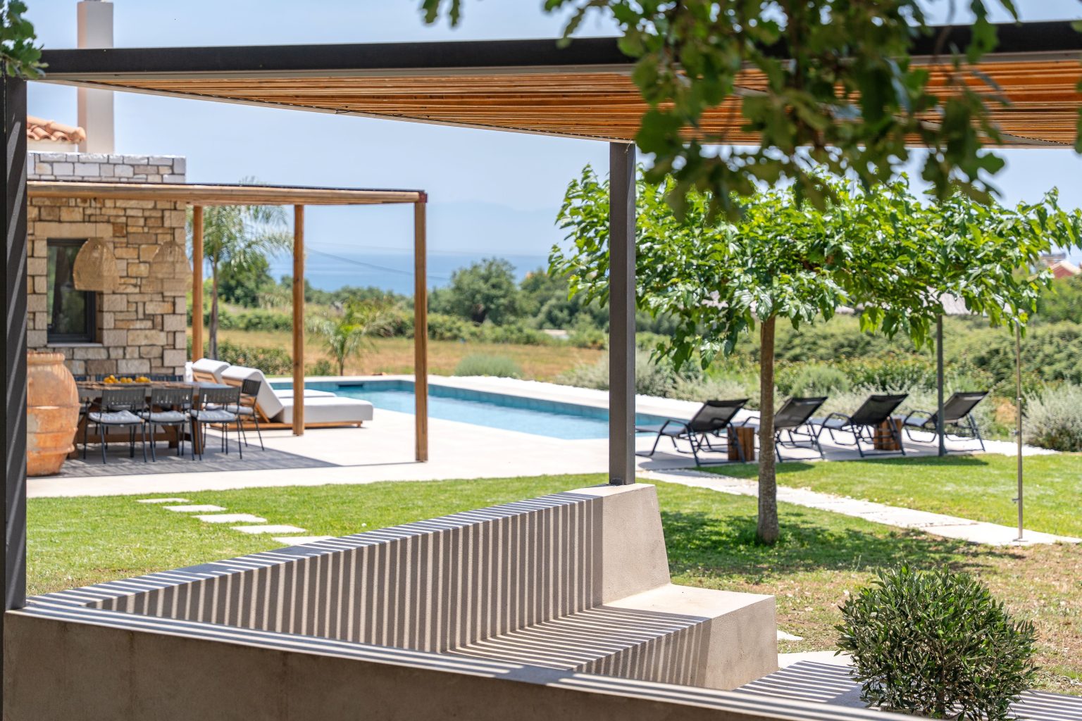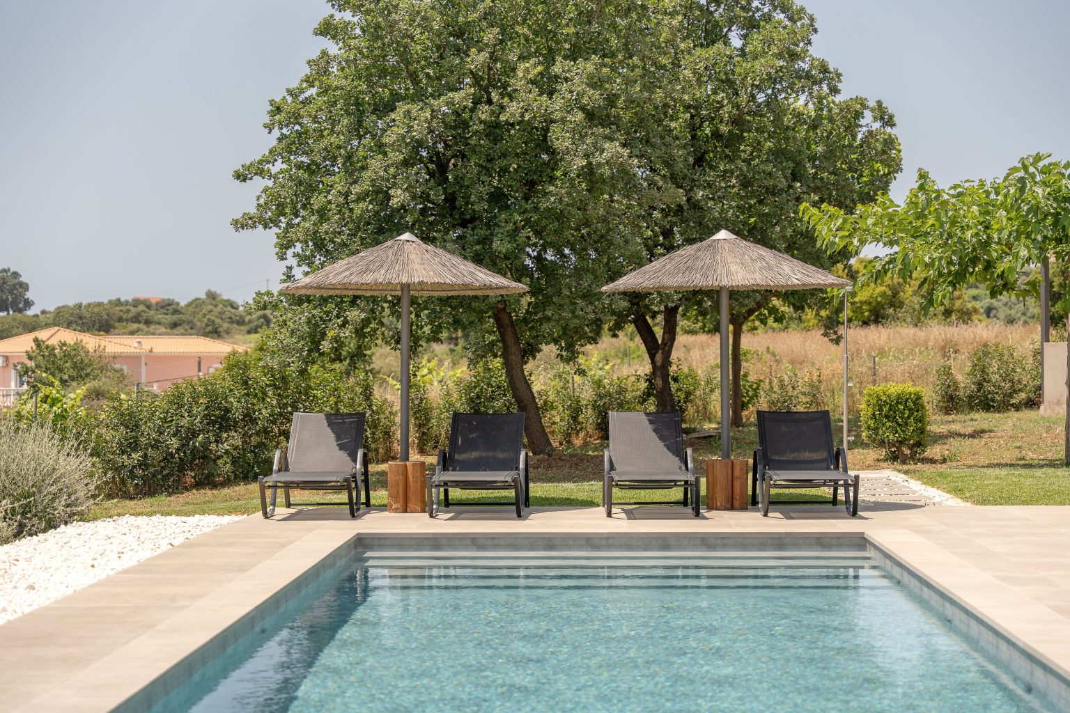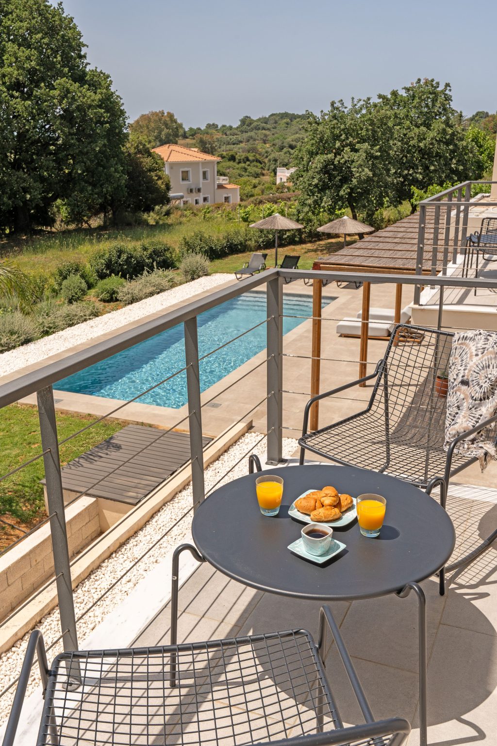 As the exceptional view of the Ionian Sea is hard to resist, the outdoor area is the ideal spot to enjoy it during the day and night. Have a great time by the pool and sun beds or enjoy breakfast and dinner in the outdoor dining area that completes the atmosphere of the luxury villa’s absolute charm.