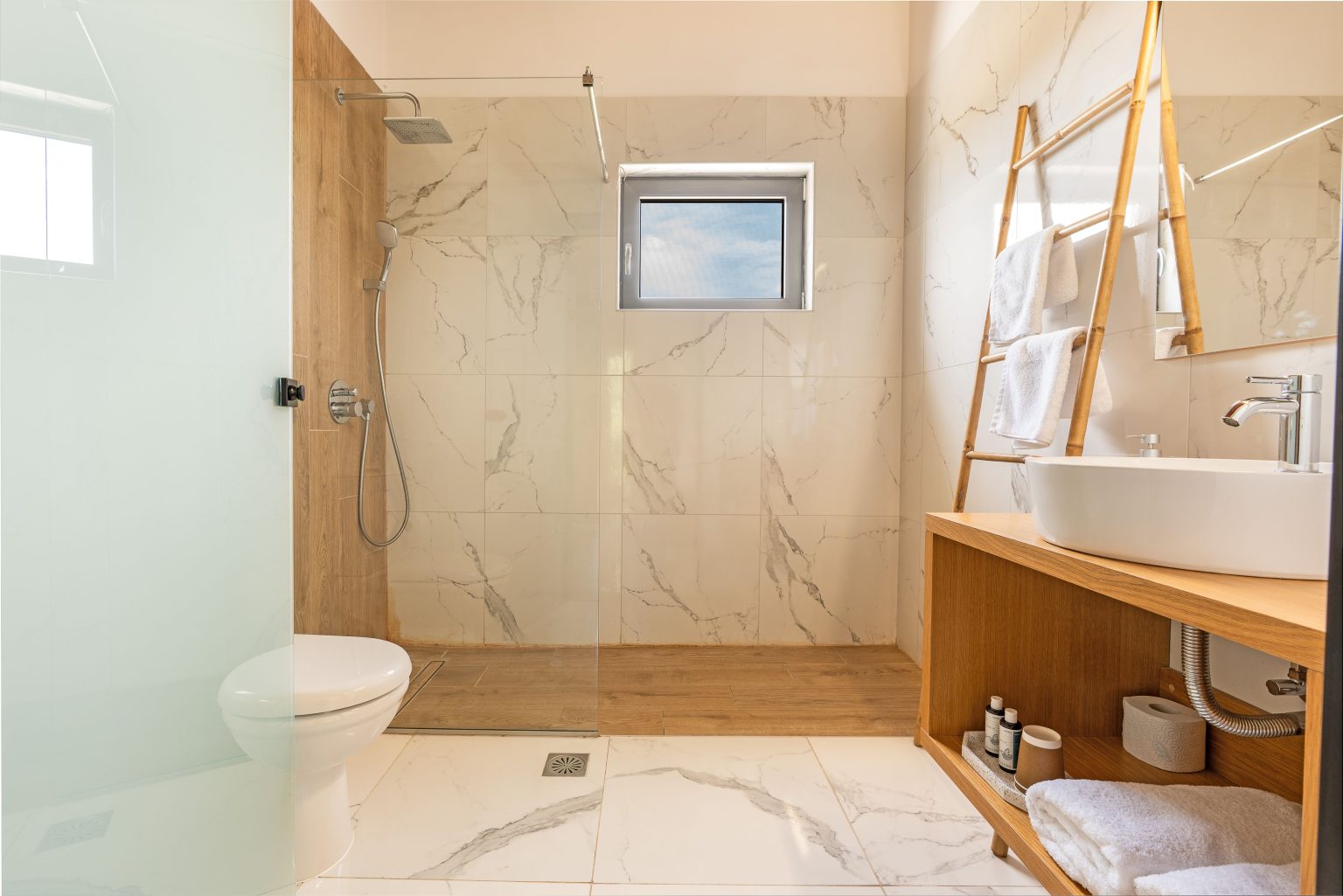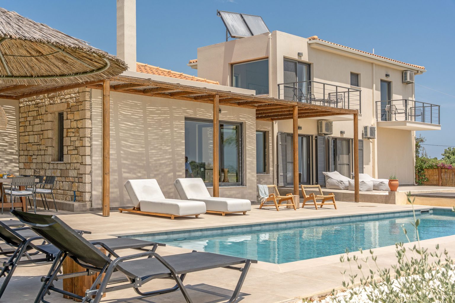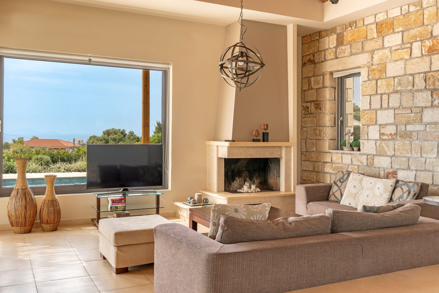 As the exceptional view of the Ionian Sea is hard to resist, the outdoor area is the ideal spot to enjoy it during the day and night. Have a great time by the pool and sun beds or enjoy breakfast and dinner in the outdoor dining area that completes the atmosphere of the luxury villa’s absolute charm.