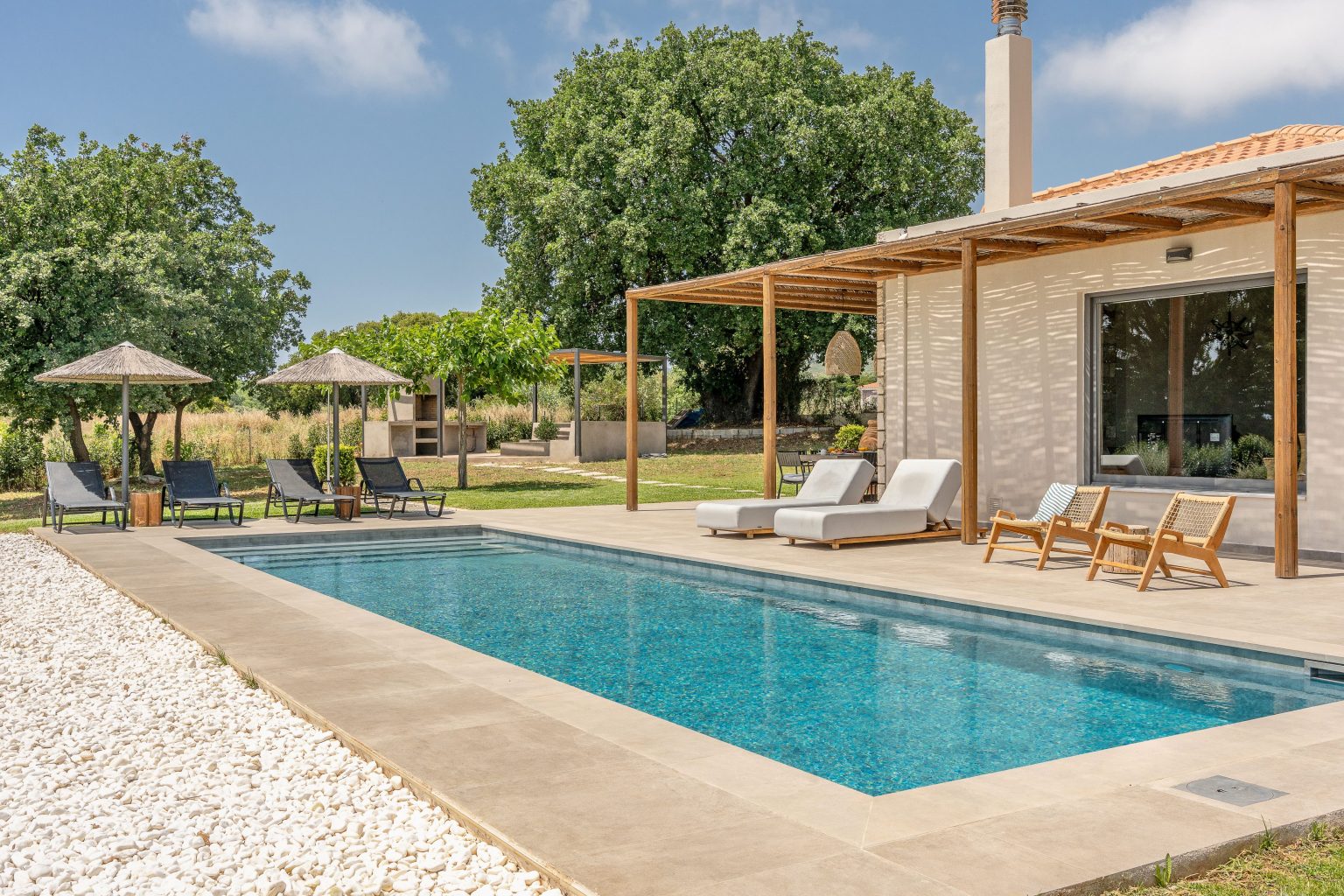 Alberi is a villa in Skala Kefalonia – member of izla homes. Villa Alberi is located in the dentra area on a hill overlooking the fields and the sea, just 1km away from the famous resort of Skala.